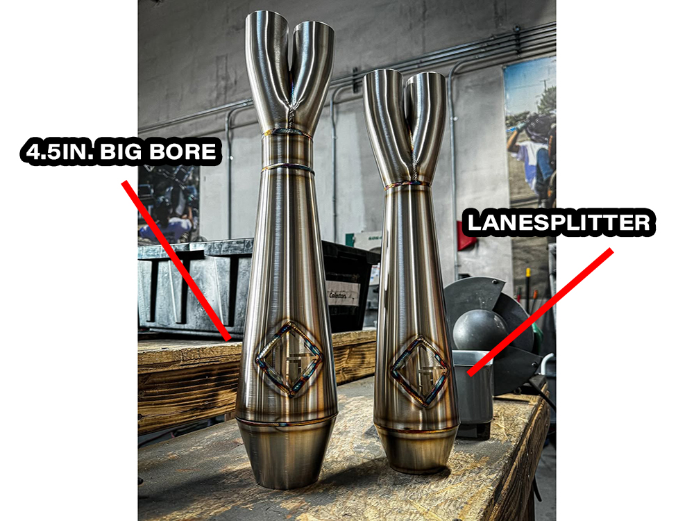 * 4.5″ high flow performance rolled cone muffler with stepped baffle from 2 ¼ to 2 ½ inches. Increases bottom to mid-range torque and horsepower on all motors. Tuned properly can accommodate 88″ to 143″.
