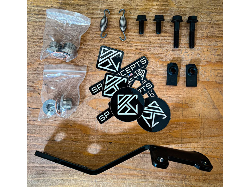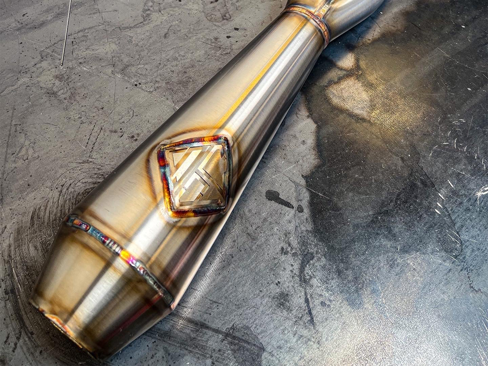 * 4″ rolled cone muffler with a 2 ¼ coiled perforated baffle for increased torque and a deep tone