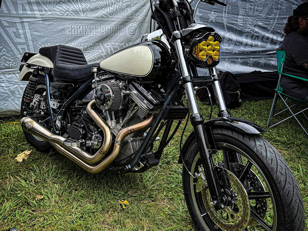 * 4″ rolled cone muffler with a 2 ¼ coiled perforated baffle for increased torque and a deep tone