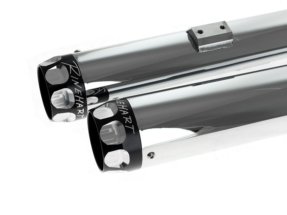 3in. Slip-On Mufflers – Chrome with Black Scalloped End Caps. Fits Softail Deuce 2007 & Fat Boy 2007-2017